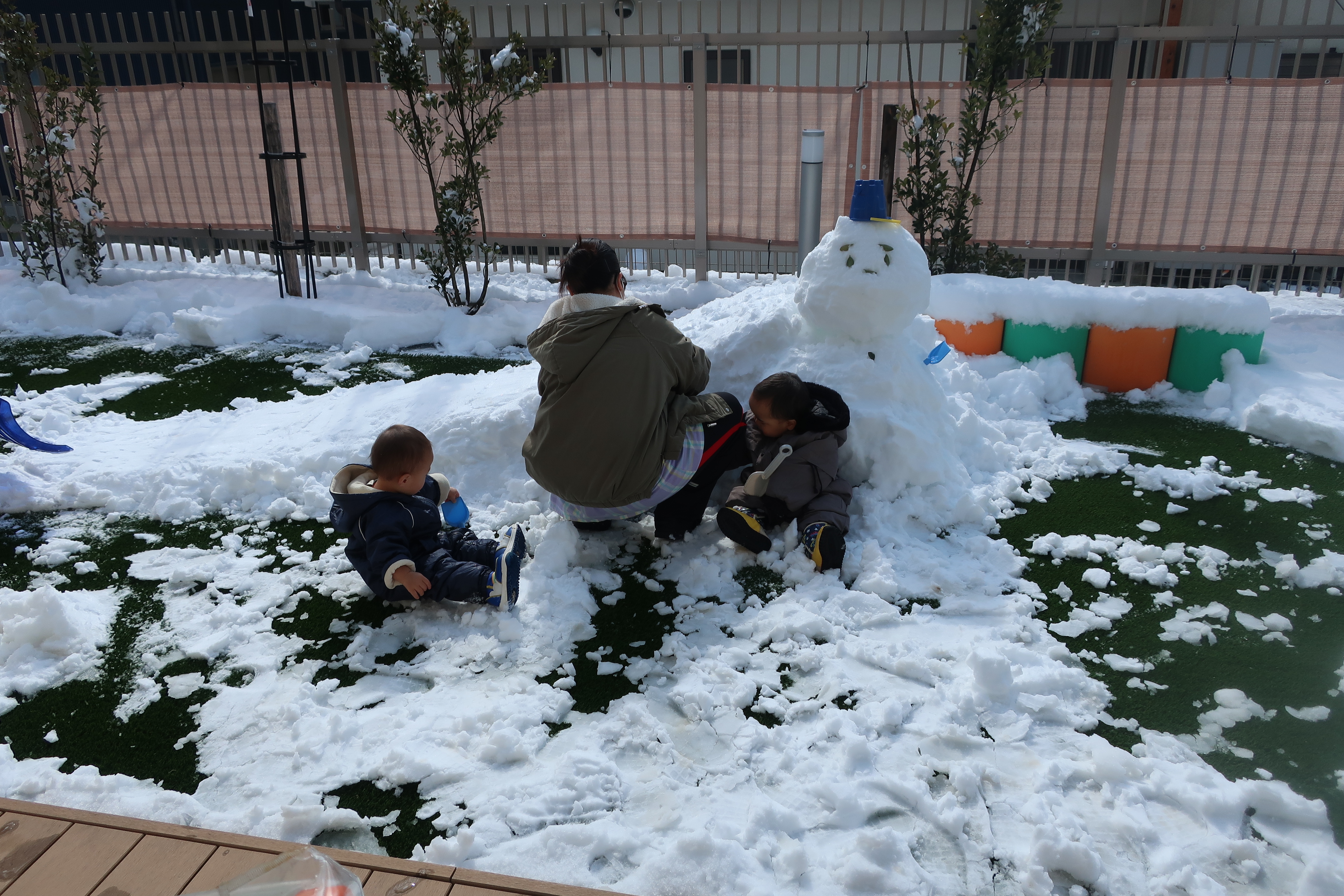 職員と一緒に乗れる雪だるまを作って、楽しみました。