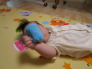 作ったお手玉はシャラシャラといい音が鳴り、小さな子ども達の手でも握りやすく、感触や音を楽しみながら遊ぶ様子が見られました。